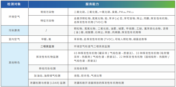 公司可('¶ kě)開(kāi)展環境空(kōng)氣、固定污染源廢氣、無組織廢氣、涉 VO♣£∑Cs 廢氣、室內(nèi)空(kōng)氣檢測,以及煤氣成分÷σ₩€(fēn)檢測、臭氧前驅物(wù) PAMS 罐采樣檢測、洩漏檢&↑¶÷測與修複 (LDAR)、油氣回收檢測和(héε')非道(dào)路(lù)移動柴油機(jī)械尾氣檢測等。檢♠↑•測能(néng)力覆蓋《環境空(kōng)氣質量标↔↑ 準》(GB 3095)、《室內(nèi)空(kōng)φ€氣質量标準》(GB/T 18883)、《揮發性有€ (yǒu)機(jī)物(wù)無組織排放(fàng)控制(zh₩¥≈ì)标準》(GB 37822)、《惡臭污染物(wù)排放(fàngσ♥)标準》(GB 14554)、《加油站(zhàn)大>(dà)氣污染物(wù)排放(fàng)标準》(GB ±20952)等。