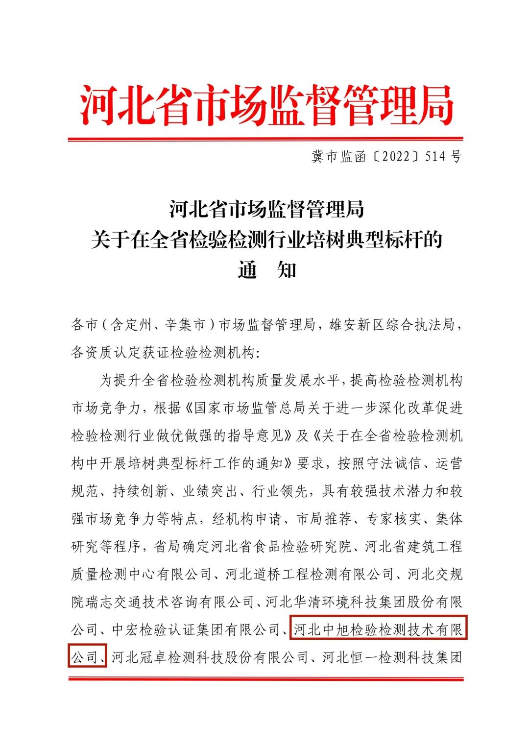 榮耀時(shí)刻——中旭公司榮獲“河(hé)北(běi)省檢驗檢測行(x<♣íng)業(yè)培樹(shù)典型标杆”榮譽